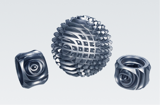 3方向に360度回転する次世代ギア。当社独自の金属加工技術により、高精度・高耐久な球状歯車を実現しました。