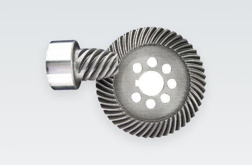 ストレートベベルギアと比べて、噛合い率の向上から、回転がスムーズになり、騒音、振動において優れた性能を持っています。
