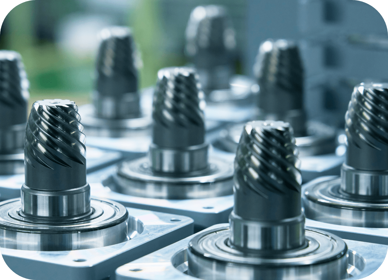 自社製品製造のためのスパイラルカッターを生材から加工します。
