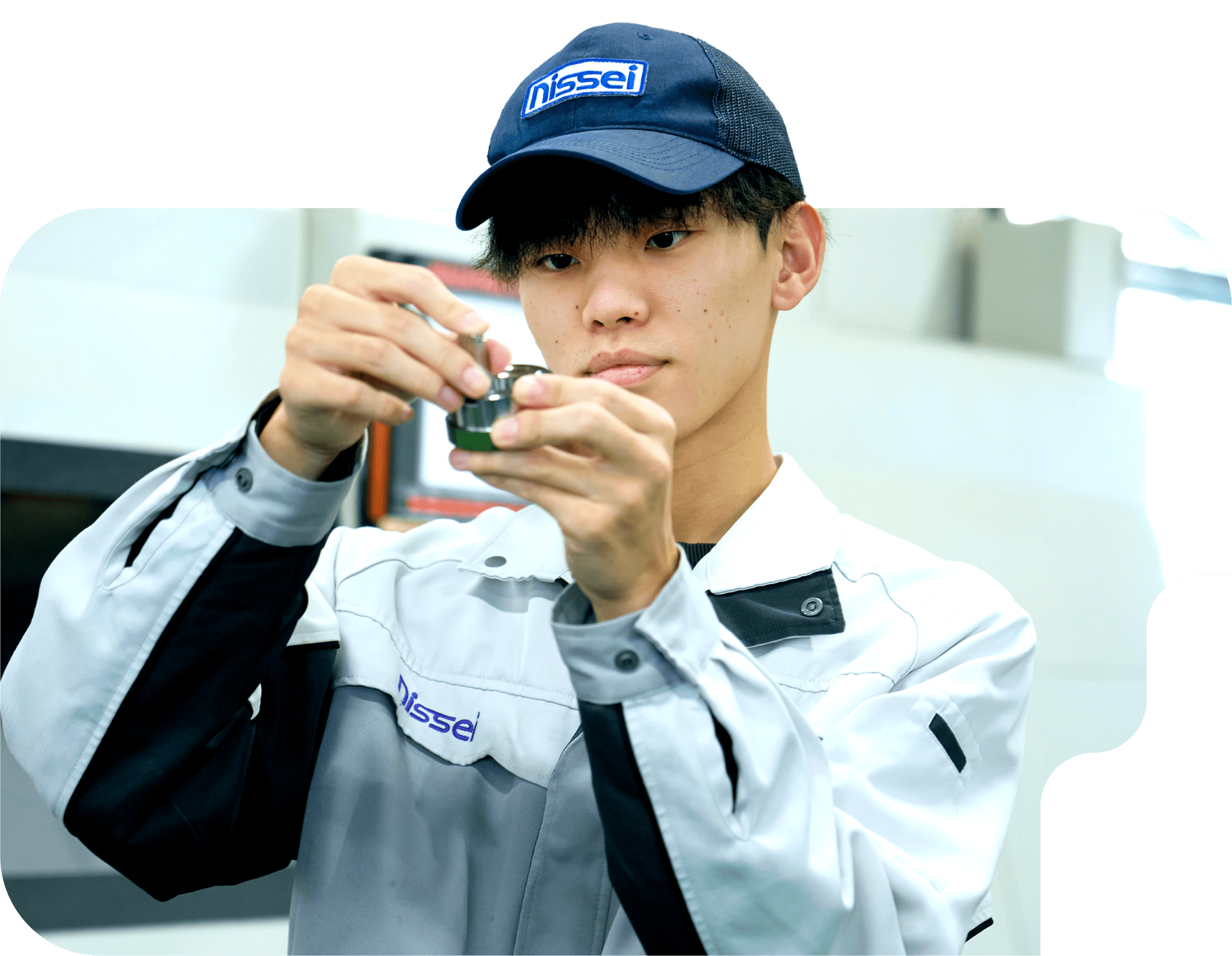 高校で設計・製図・NC(数値制御)などを学んでいたため、機械加工に関連する会社に就職したいと考えていました。ニッセイの求人票を見た際に「NCでの機械加工」という記載があったため、興味を持ち工場見学へ。その際に、社員の方が繊細な加工技術を駆使しているところを見て、ここなら機械加工の新たな技術を身に付けられる!と感じました。