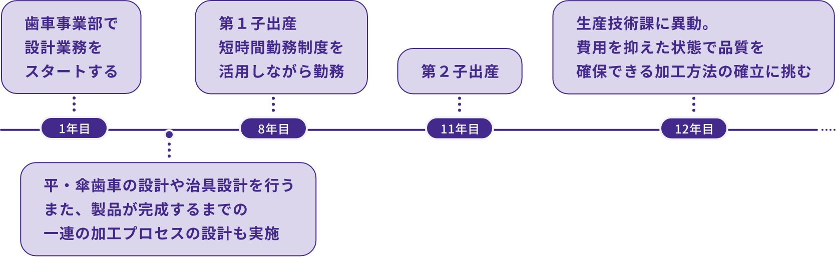 2018年に第1子、2021年に2子を出産し、今は短時間勤務制度を活用しながら生産技術としてコスト削減や品質改善に取り組む。