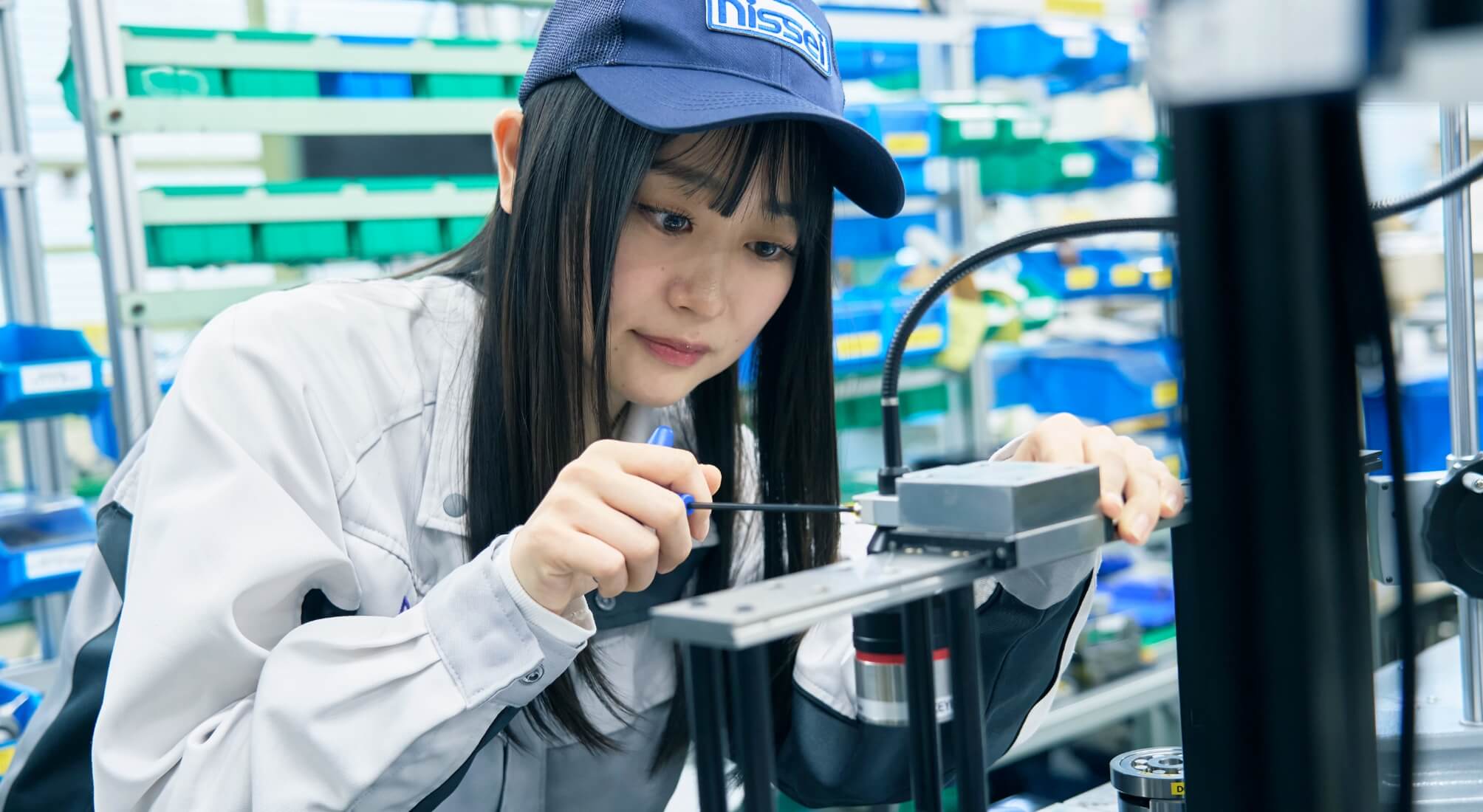 私は現在、製品の加工・組立をする際の補助器具である「治具」の設計に携わりながら、ニッセイのものづくりの生命線である生産ラインを支えています。